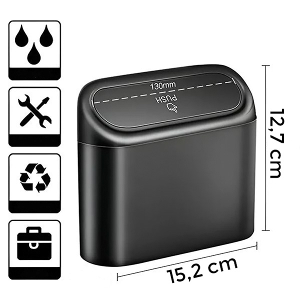 CLEANMOBIL je izrađen od izdržljive, vodootporne plastike za maksimalnu snagu i dugovječnost. Dizajn poklopca na guranje olakšava zbrinjavanje smeća dok istovremeno zatvara mirise, kako bi vaš automobil bio svjež i čist.