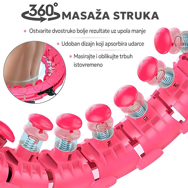 S magnetnim spojnim segmentima i masažnim glavama od 360°, hula hoop ostaje sigurno na mjestu, što ga čini idealnim fitness alatom čak i za početnike.