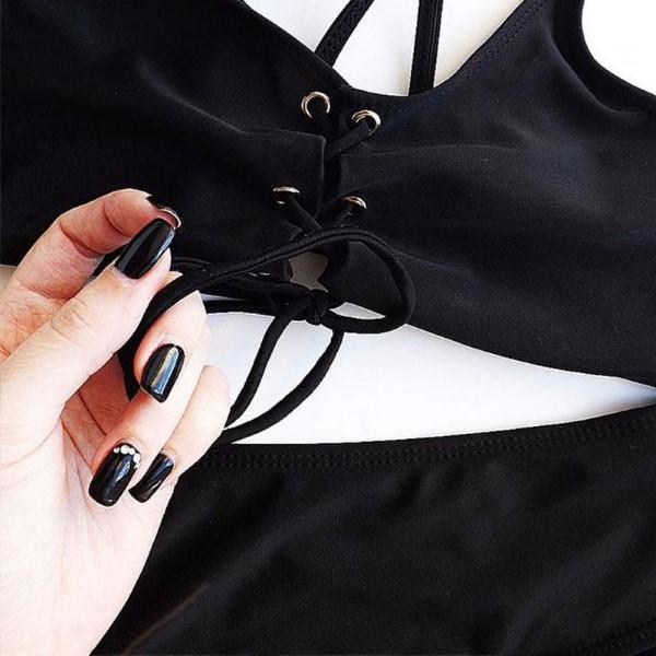 Gornji dio kupaćeg kostima jednostavno zategnite špagicama na prednjoj strani.
