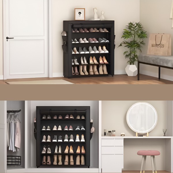 Opremljen tkaninom otpornom na prašinu i zatvaračem. Ovaj stalak za cipele osigurava da vaše cipele ostanu čiste, štiteći ih od prašine i prljavštine.
